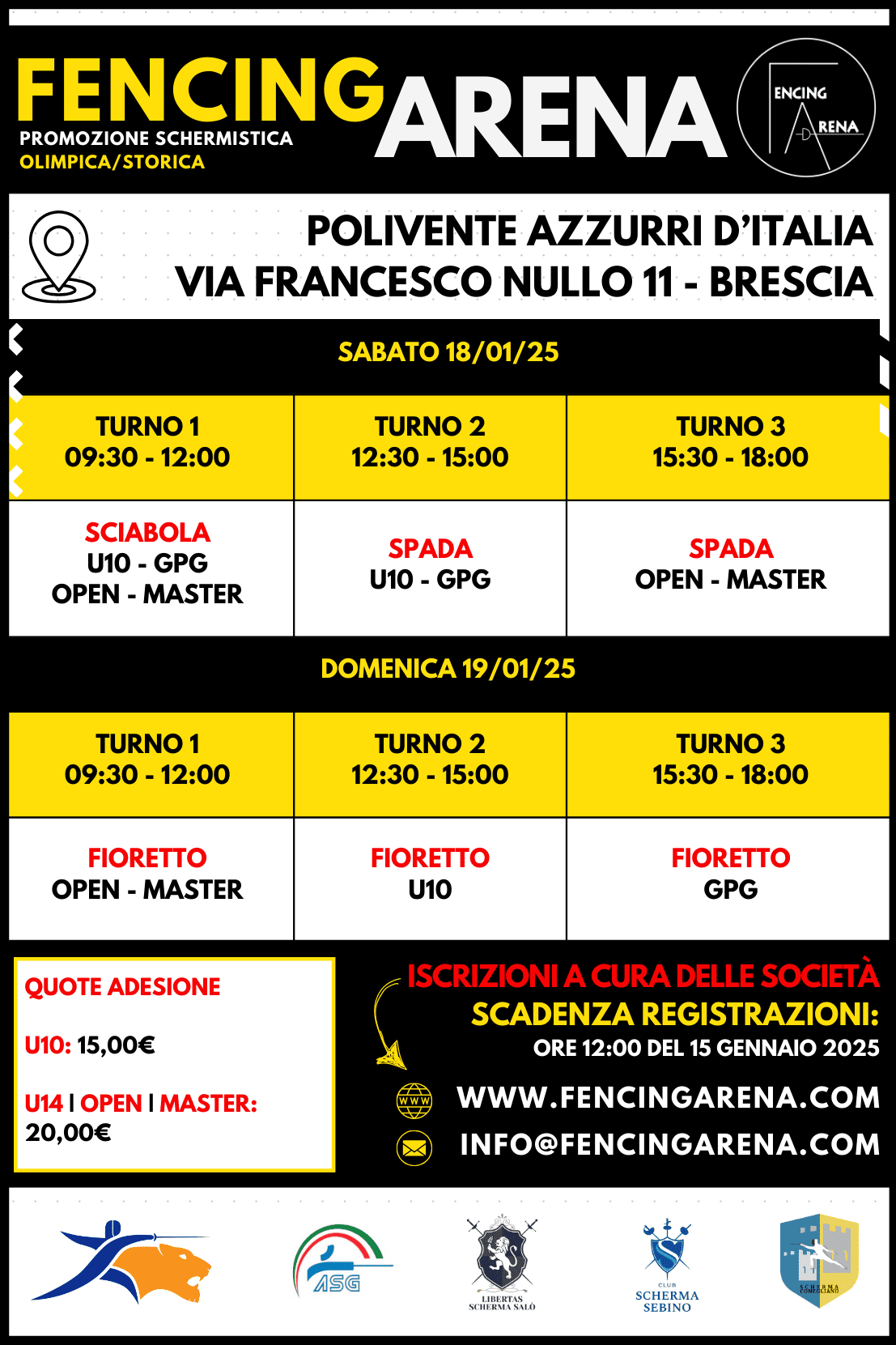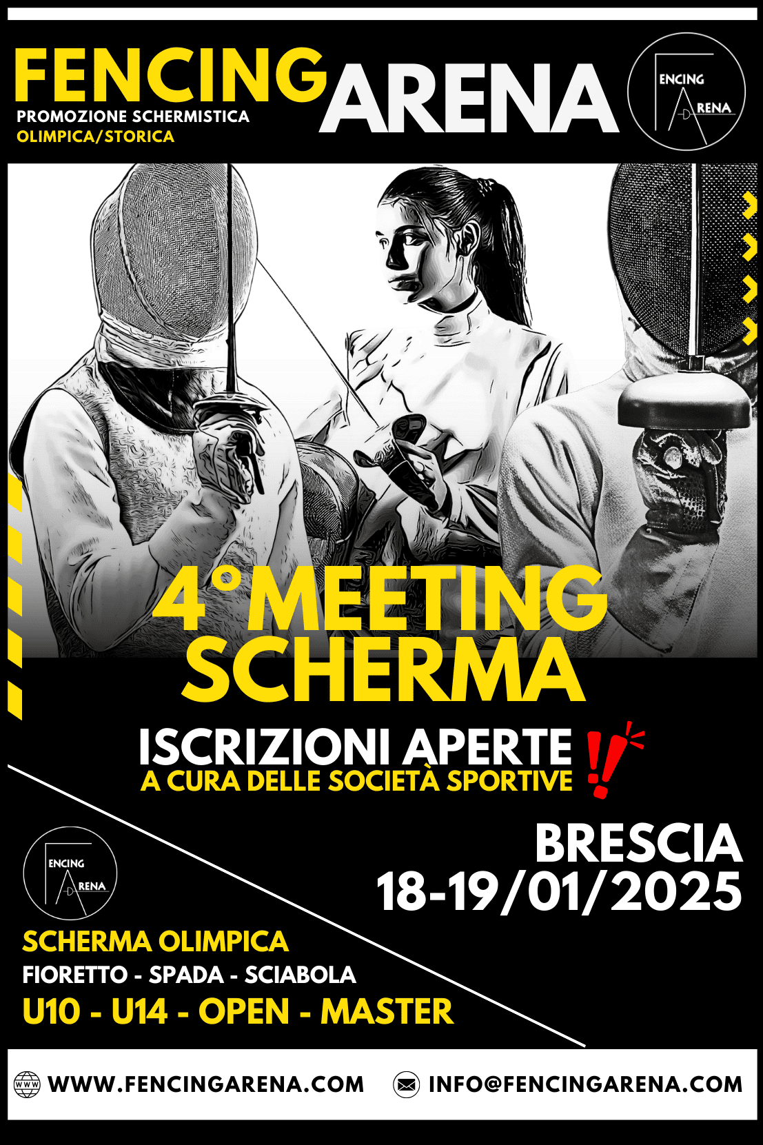 Per info varie (o assistenza iscrizioni) scrivere a info@fencingarena.com o chiamare al numero 334 7430300.
