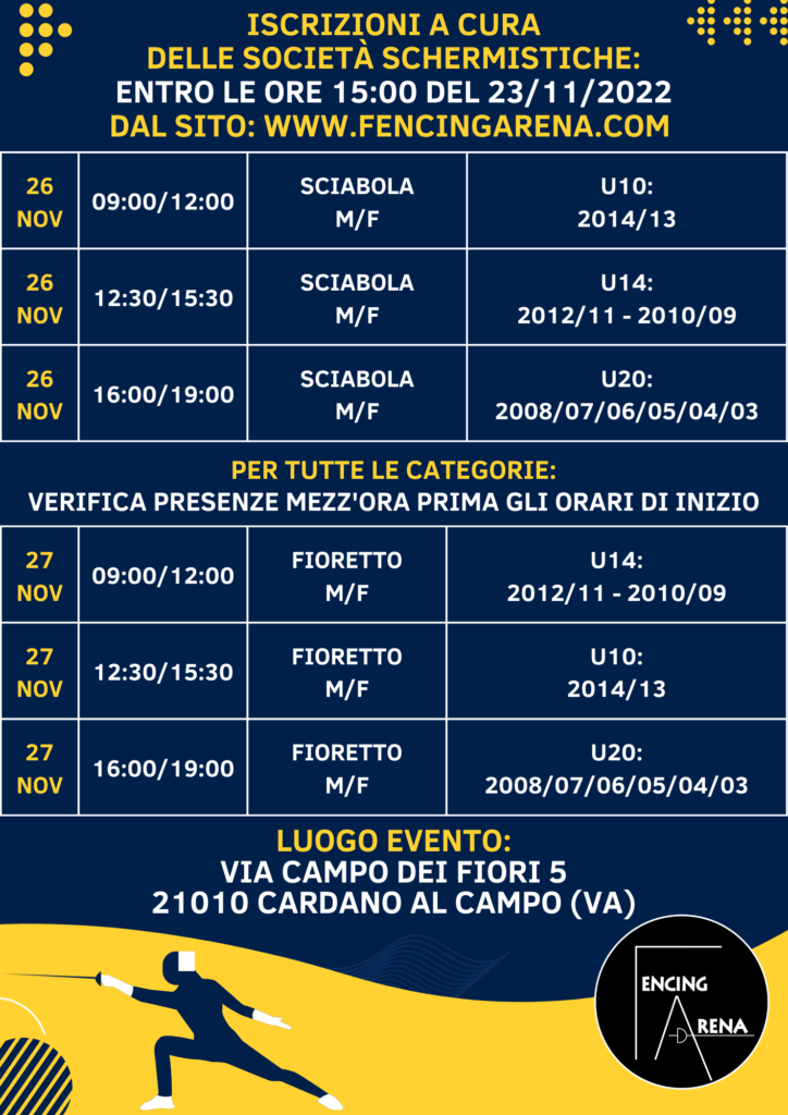 | 26/27 NOV 2022 | CARDANO AL CAMPO (VA) | FIO/SP/SC | U10 – U14 – U20 |