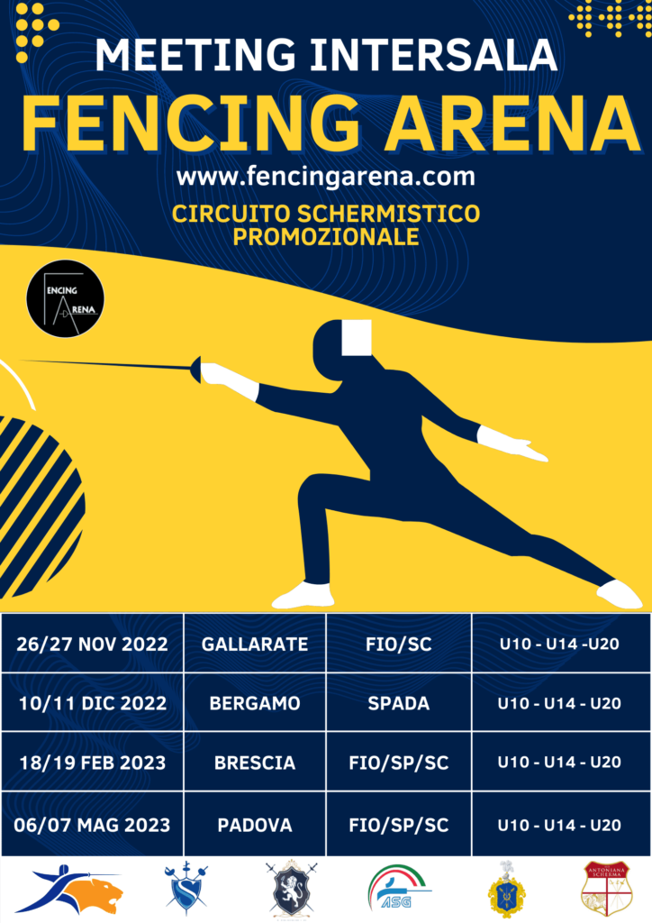 Al fin di favorire l’incremento della pratica schermistica, in accordo tra alcune società schermistiche, si avvia ufficialmente il progetto “Meeting Fencing Arena”. Rivolto agli atleti tesserati FIS e praticanti nelle armi di Fioretto/Spada/Sciabola delle categorie U10 – U14 – U20.
